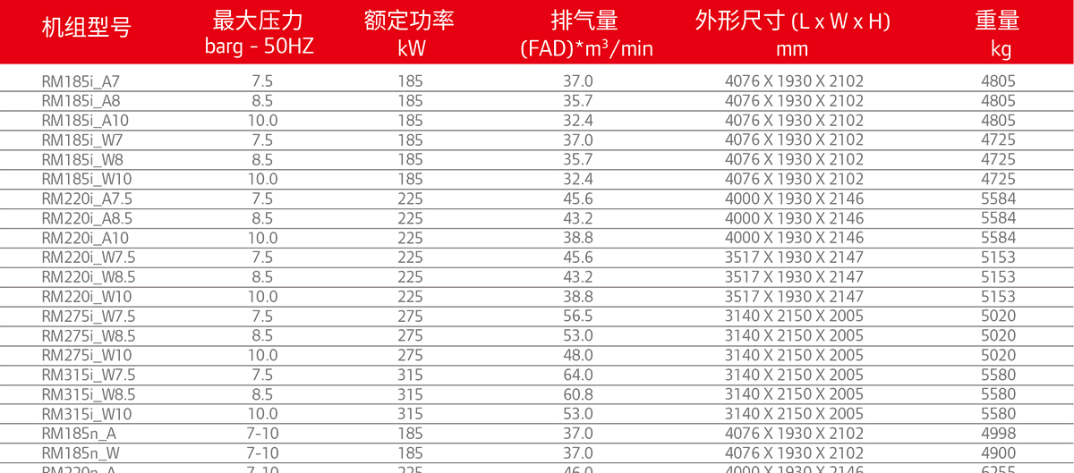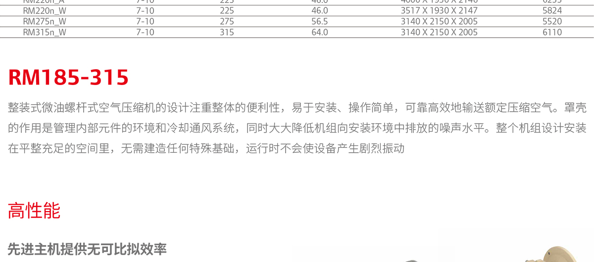 產(chǎn)品名稱:RM系列185-315 kW微油螺桿式空氣縮系統(tǒng)